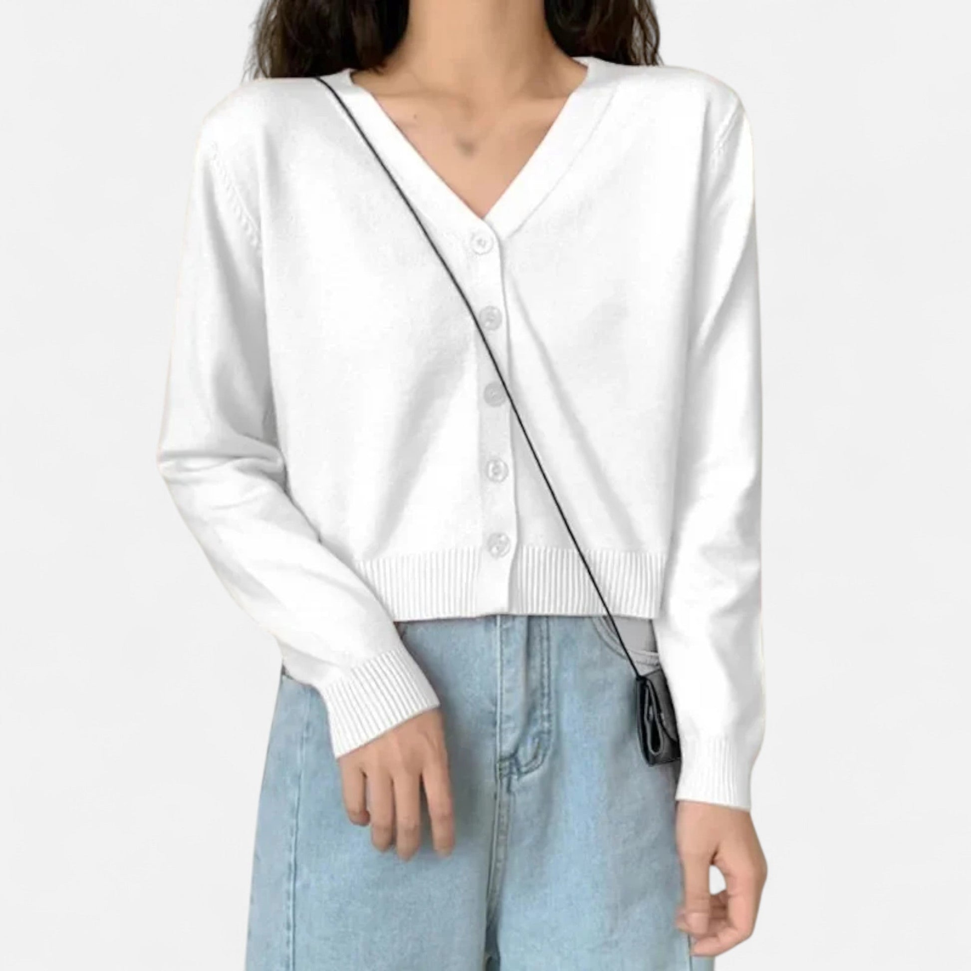 Avec Maison Avenoire |, ce cardigan en maille à col V apporte une touche de raffinement discret à vos tenues. Sa coupe courte et féminine sublime la silhouette, idéale pour exprimer une élégance old money en toute simplicité.